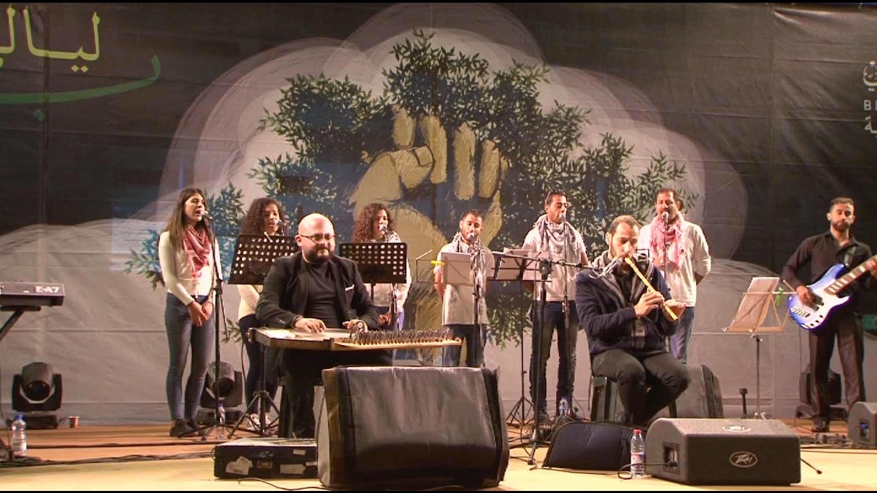 أما راقصو فرقة جذور للدبكة الشعبي، والمكونة من 16 طالبا وطالبة من جامعة بيرزيت، فقدموا رقصات جديدة من التراث الفلسطيني والعربي، والرقصات من تصميم وتدريب الفنان محمد عطا، وتوزيع الفنان عبد الحليم أبو حلتم.