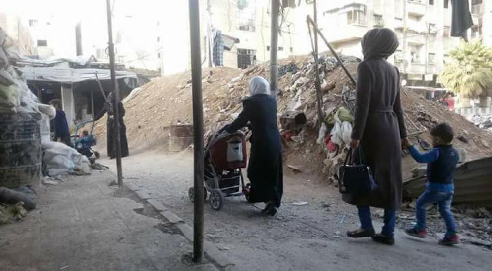 فيما تعيش أكثر من ثلاثة آلاف عائلة في ظروف غير إنسانية بينهم خمس وثلاثون عائلة يحاصرها تنظيم الدولة منذ أكثر من شهر في منطقة غرب اليرموك الواقعة تحت سيطرة جبهة النصرة ولا يُعرف مصيرهم.