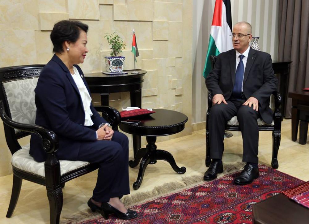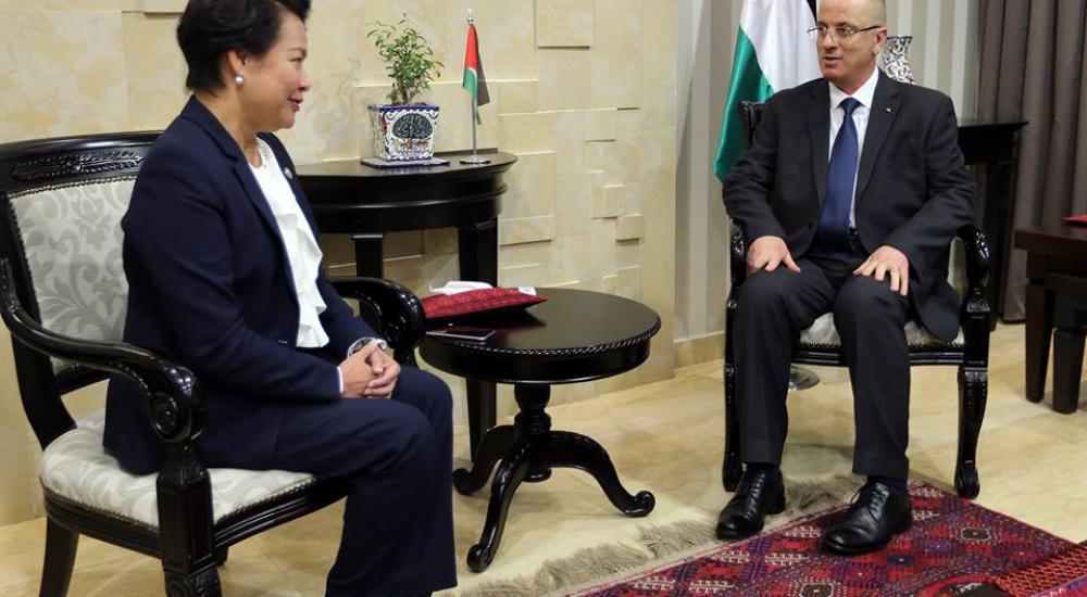 أطلع رئيس الوزراء الفلسطيني رامي الحمد الله الأربعاء في مكتبه برام الله، سفيرة الفلبين لدى فلسطين غير المقيمة جونيفير ماهيلوم، على آخر التطورات السياسية، ومستجدات المصالحة الوطنية.