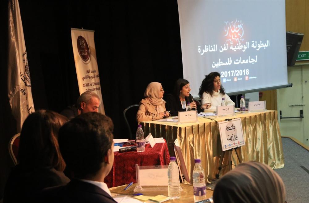 حازت جامعة بيرزيت على المركز الأول في اختتام مؤسسة أفكار للتطوير التربوي والثقافي، الفعاليات النهائية للبطولة الوطنية لفن المناظرة لجامعات فلسطين 2017\2018 الفصل الأول.