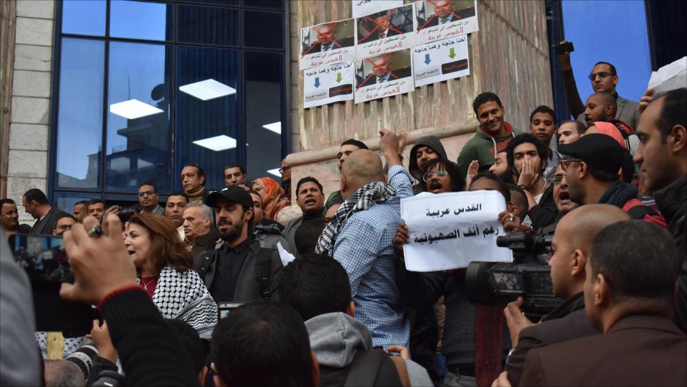 وطالب المحتجون السلطات بقطع العلاقات مع الكيان، وطرد السفير الإسرائيلي في القاهرة، وإغلاق السفارة الإسرائيلية ببلدهم.