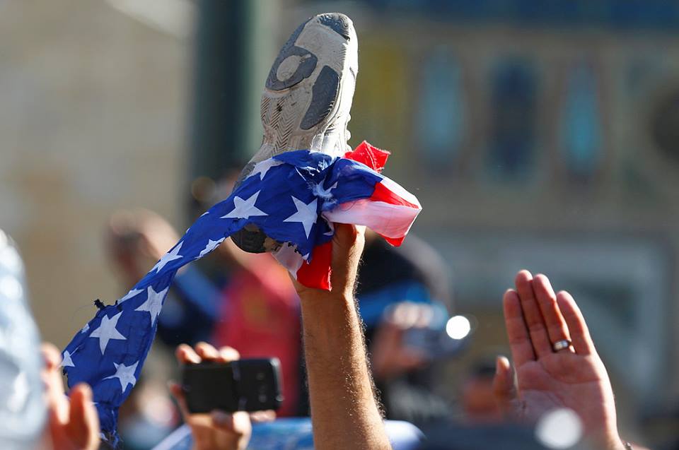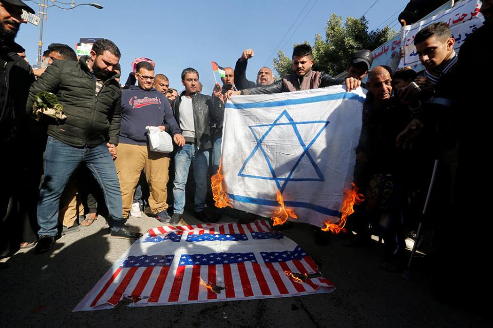 وأحرق المشاركون الأعلام الأمريكية والإسرائيلية، هاتفين "لا سفارة إسرائيلية على أرض أردنية"، ودعا المشاركون لإغلاق السفارة الإسرائيلية، وإلغاء معاهدة "وادي عربة" ردا على القرار الأمريكي.