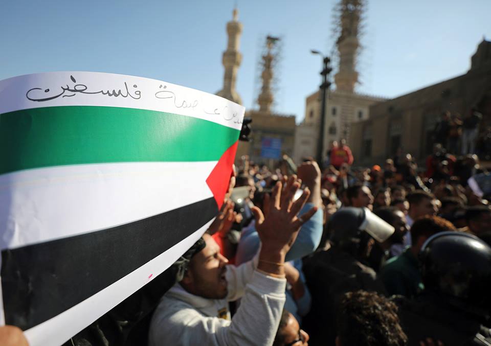 وخرج مئات المصلين من مسجد الجامع الأزهر شرقي القاهرة وفي منطقة الهرم بالجيزة الجمعة في مسيرتين احتجاجا على قرار ترمب.
