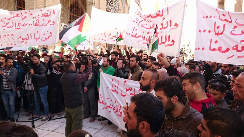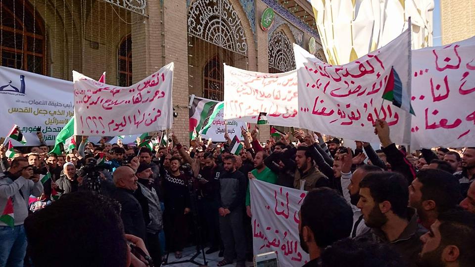وانطلقت تظاهرات في كافة محافظات العراق؛ عقب صلاة الجمعة، تنديدًا بالقرار الأمريكي، على أن تستمر لاسيما وأن القدس تعتبر أولى قبلتي المسلمين، وفق ما أفادت به وكالة الأنباء العراقية (واع).