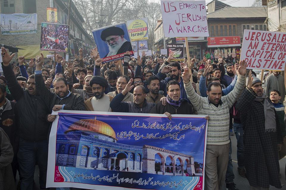 وفي كشمير، تظاهر المئات للإعراب عن احتجاجهم ضد إعلان الرئيس الأمريكي، واحتشد المتظاهرون في مدينة "سريناجار" وبعض المناطق الأخرى بالإقليم عقب صلاة الجمعة.