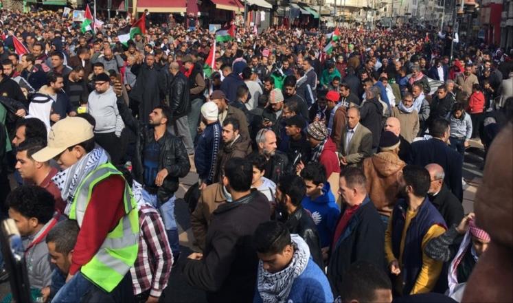 ويشهد الأردن منذ أكثر من أسبوع مظاهرات ونشاطات احتجاجية متفاوتة بحجمها ووتيرتها تندد بقرار ترامب بشأن القدس. فقد شارك الجمعة الماضية أكثر من عشرين ألف شخص في مظاهرة انطلقت عقب صلاة الجمعة في عمان، وسط شعارات منددة بقرار ترمب.