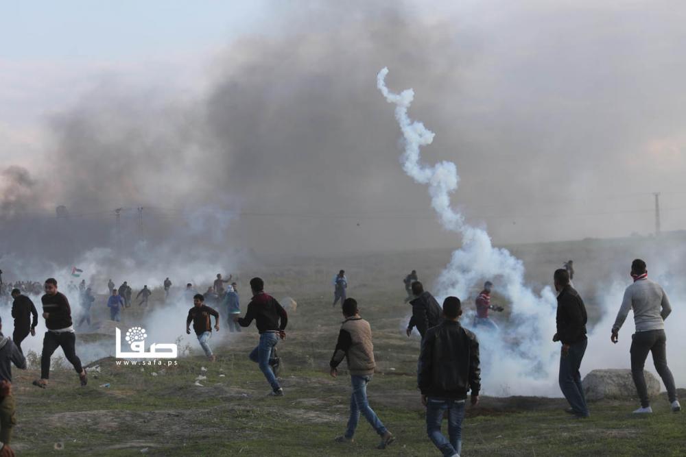 وأصيب اليوم عشرات الحالات بالاختناق في مواجهات مع قوات الاحتلال في مناطق محاذية للشريط الأمني شرقي قطاع غزة في الجمعة الثانية لانتفاضة العاصمة" رفضًا للقرار الأمريكي باعتبار القدس "عاصمة للاحتلال"