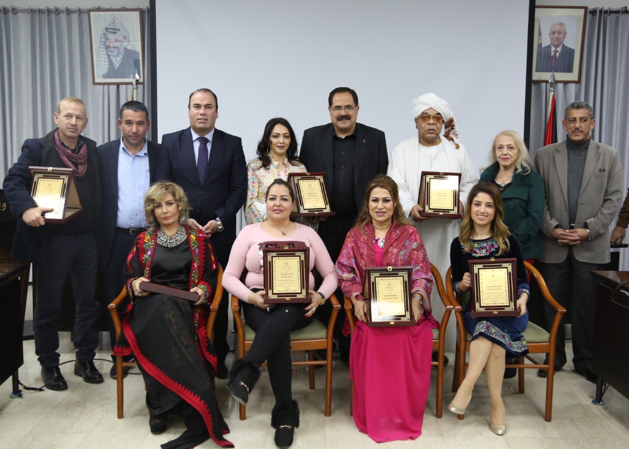 كرم وزير التربية والتعليم العالي صبري صيدم اليوم الأحد، مجموعة من الفنانين العرب المتواجدين في فلسطين لإنتاج أوبريت "شمس العروبة" بالتعاون مع كوكبة من الفنانين العرب.
