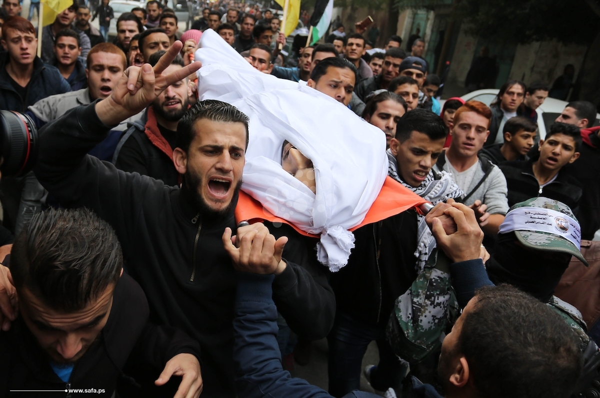 شيّعت جماهير غفيرة في غزة السبت جثمان الشهيد محمد محيسن (29 عامًا) والذي ارتقى أمس الجمعة خلال تظاهرات للشبان مع الاحتلال شرق المدينة.