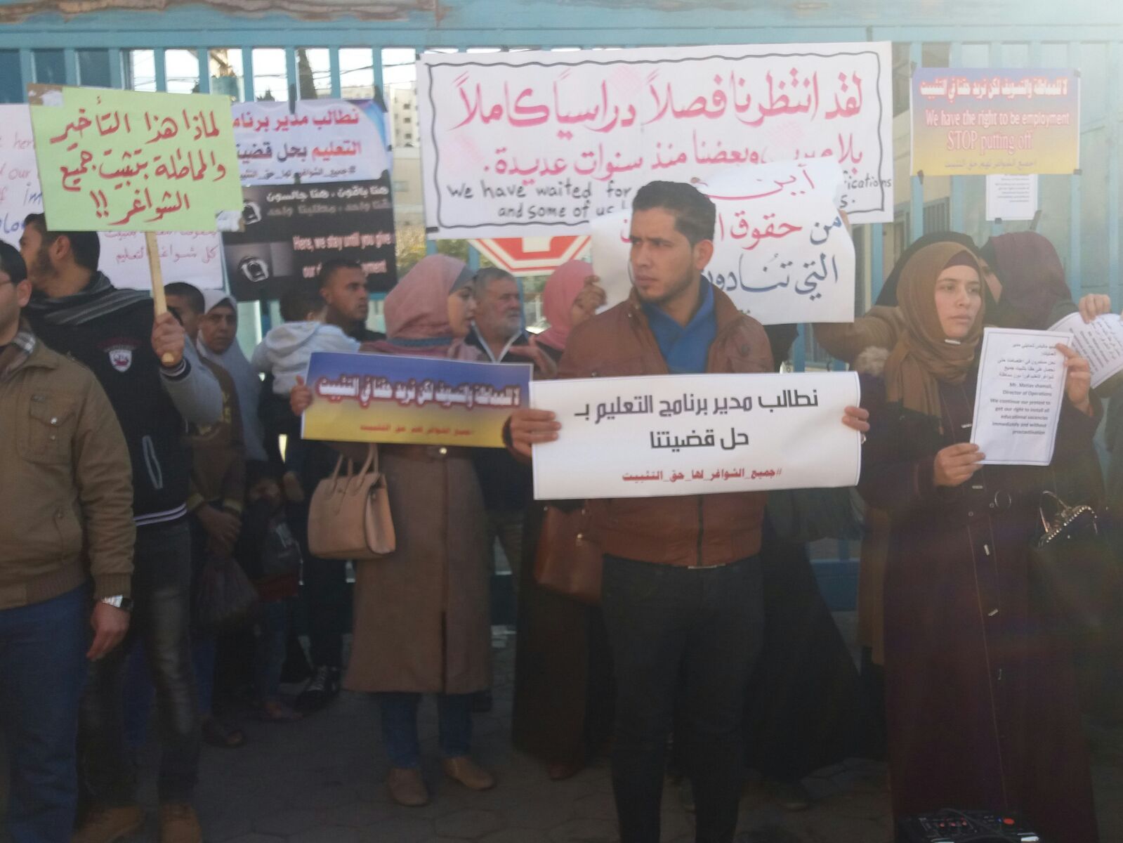 يشار إلى أنه في مطلع فبراير من العام الماضي أعلنت دائرة التعليم بالأونروا عن حاجتها لمعلمين على بند العقد الدائم، واجتاز هؤلاء مسابقة التوظيف في وكالة الغوث ثم المقابلة الشخصية.