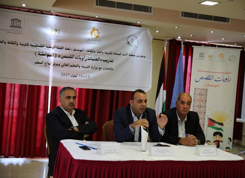 اختتمت اللجنة الوطنية الفلسطينية للتربية والثقافة والعلوم ووزارة التربية والتعليم العالي ومركز إبداع المعلم مشروع "راويات القصص – المواطنة".