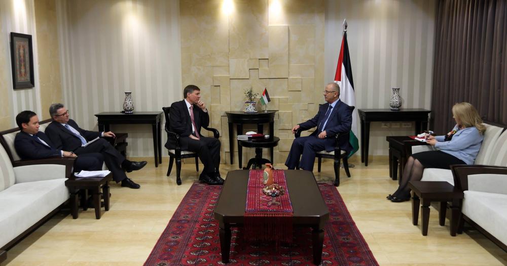 التقى رئيس الوزراء رامي الحمد الله اليوم الخميس في رام الله القنصل البريطاني العام في القدس فيليب هول، حيث بحث معه آخر التطورات السياسية، في ظل تعثر عملية السلام وتداعيات قرارات ترمب بشأن القدس واللاجئين.