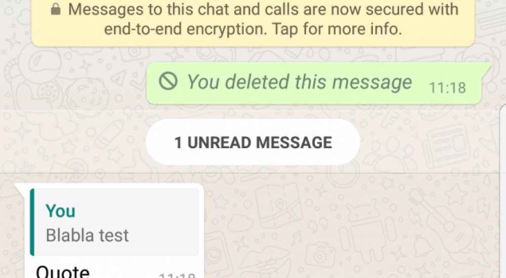 قبل عدة أشهر قدمت واتساب الميزة الأكثر طلبًا وهي إمكانية حذف الرسائل المرسلة خلال مدة معينة، وبالرغم من أنها ستشير بوضوح إلى أن هناك رسالة ما حذفت، إلا أن هذا الحذف يحمل بعض الثغرات الذي لا ينطبق عليه.