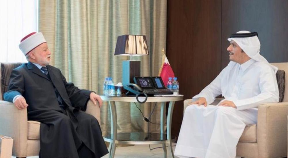 بحث الشيخ محمد بن عبد الرحمن آل ثاني نائب رئيس الوزراء وزير الخارجية القطري، ومحمد حسين المفتي العام للقدس والديار الفلسطينية اليوم الأربعاء الأوضاع بالأراضي المحتلة.