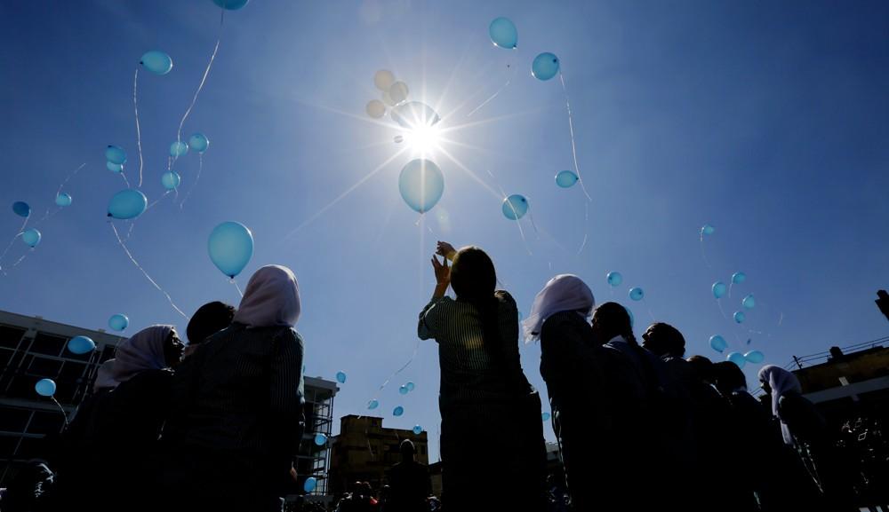 أطلق في سماء مدينة رام الله وسط الضفة الغربية المحتلة اليوم الاثنين مئات البالونات من مدرسة بنات الأمعري الأساسية، وذلك لحشد الدعم الدولي لوكالة غوث وتشغيل اللاجئين الفلسطينيين "أونروا".