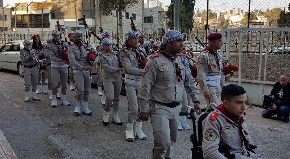 واستهل الحفل بتلاوة آيات من القرآن الكريم رتلها المقرئ عزام دويك، وعزف النشيد الوطني الفلسطيني وقراءة سورة الفاتحة، وعرض كشفي لفرقة كشافة شعلة القدس.
