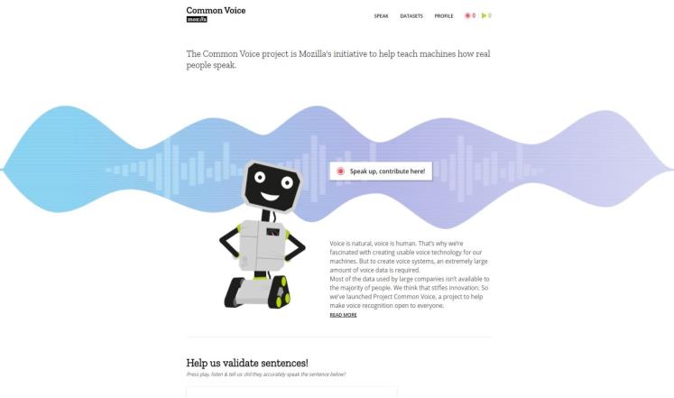 كما يمكن للمستخدم أيضا الاستماع إلى عينات الصوت المسجلة تحت بند "استماع" والتأكد من صحتها بنفسه كي تتمكن موزيلا مستقبلا من تطوير مساعد رقمي لا يعتمد على شركات الإنترنت العملاقة.