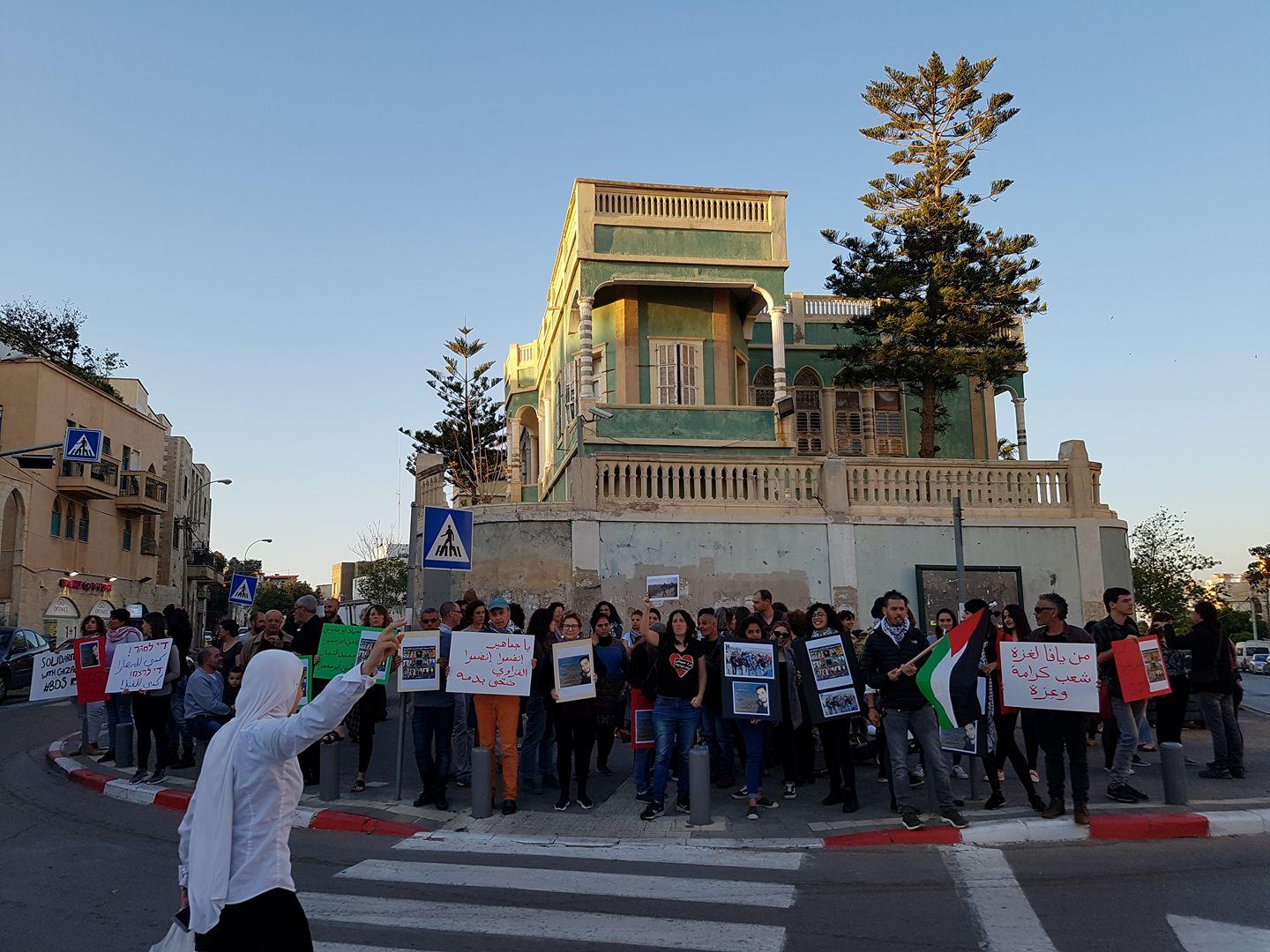 تظاهر عشرات الناشطين مساء الأحد في مدينة يافا بالداخل الفلسطيني المحتل ضد العدوان الإسرائيلي على المتظاهرين والمعتصمين السلميين في غزة ما أسفى عن استشهاد 15 فلسطينيًا وإصابة 1500 أخرين.