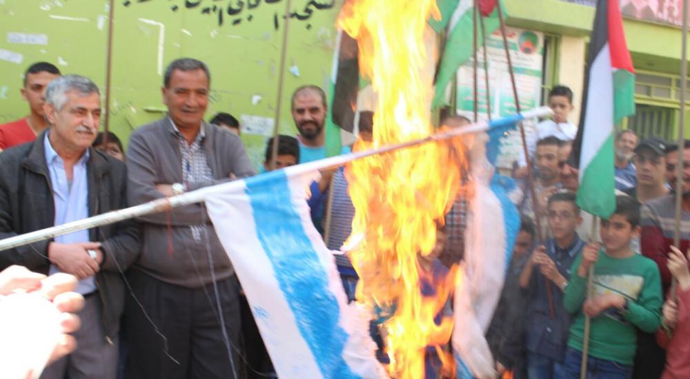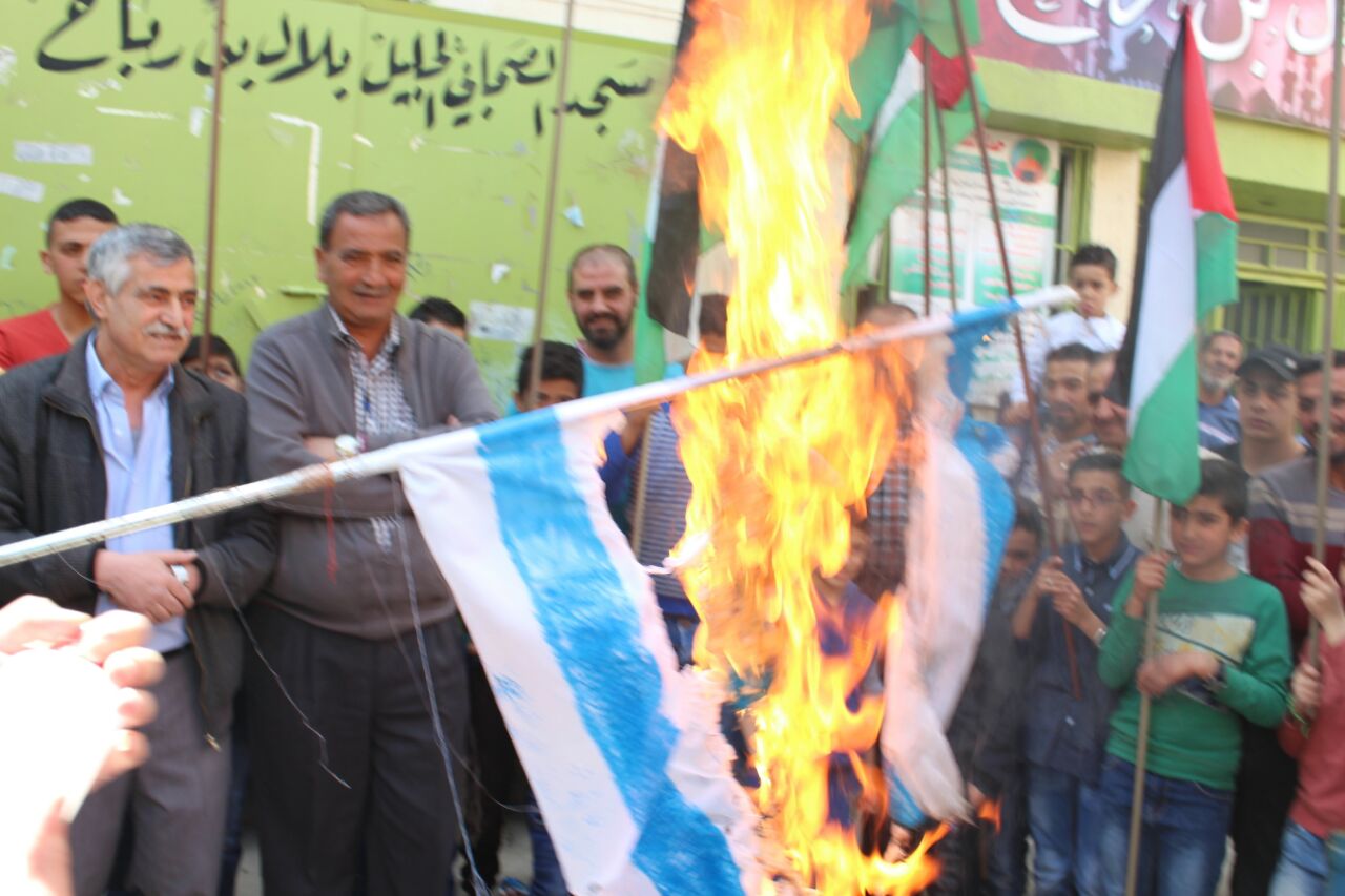 اعتصام حاشد لنصرة لأهلنا في مسيرات العودة الكبرى ورفضا لصفقة القرن استجابة لدعوة أهلنا بالداخل وتم رفع العلم الفلسطيني وحرق العلم الإسرائيلي.