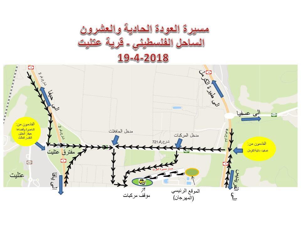 وسيتجمع المشاركون في عتليت، في الساعة الثانية بعد الظهر، ثم تنطلق مسيرة العودة الساعة الثالثة بعد ظهر غدٍ الخميس.