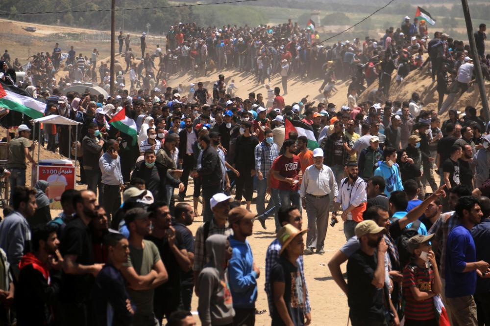 وقال: تأتي هذه الملحمة في رد واضح على هذه الجريمة النكراء (نقل السفارة الامريكية) ظلما وعدوانا الى عاصمة فلسطين الأبدية خرج شعبنا اليوم ليرد هذا العدوان الجديد.