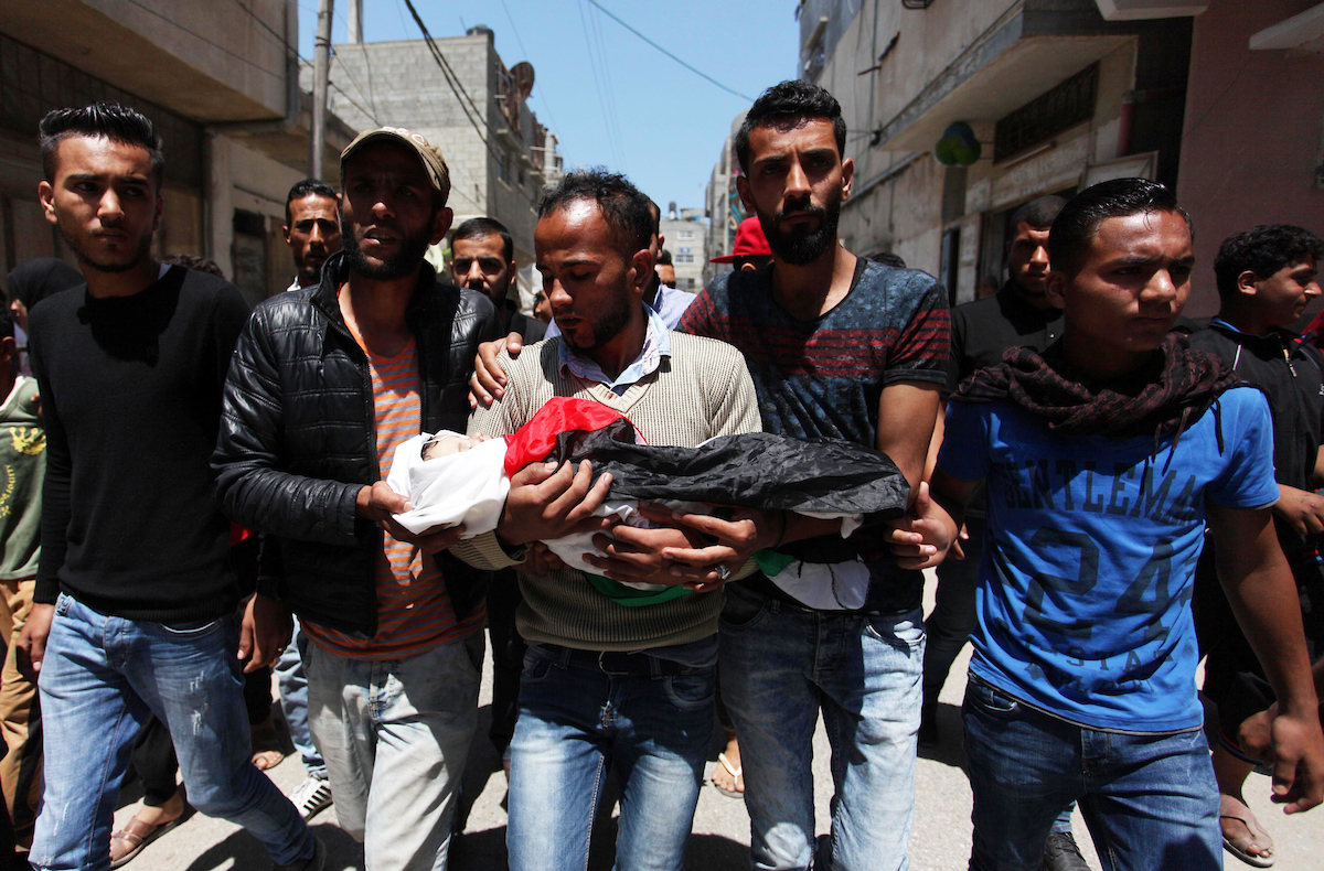 وارتكب جيش الاحتلال الإسرائيلي الاثنين، مجزرة بحق المتظاهرين السلميين على حدود قطاع غزة، إذ قتل 60 شخصا وجرح قرابة 3000 آخرين بالرصاص الحي والمطاطي وقنابل الغاز المسيل للدموع.