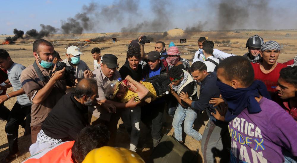 وأمس ارتكب الجيش الإسرائيلي مجزرة بحق المتظاهرين السلميين على حدود قطاع غزة، واستشهد فيها 62 فلسطينيًا وجرح أكثر من 2270 آخرين، بالرصاص الحي والمطاطي وقنابل الغاز المسيل للدموع.