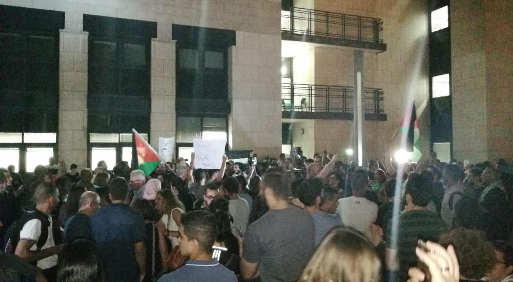 وأكد مراسل "عرب 48" أن المتظاهرين يتوافدون بكثافة إلى ساحة المحكمة، وسط تهديدات الشرطة لأهالي المعتقلين بعدم إدخالهم لحضور جلسة المحاكمة، واستفزاز المتظاهرين ورفع السلاح بوجههم، وإطفاء إنارة ساحة المحكمة.