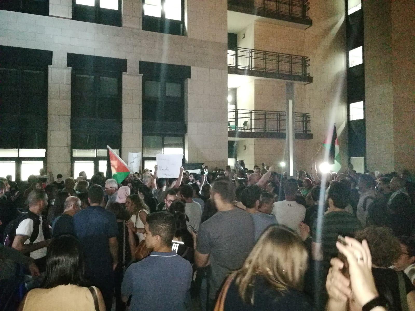 ويشهد محيط محكمة الصلح في حيفا حضورًا كثيفًا لقوات الشرطة الإسرائيلية، حيث دعا ناشطون إلى وقفة احتجاجية بالتزامن مع انعقاد المحكمة، التي تنظر في تمديد اعتقال 19 ناشطًا من أراضي الـ48، تحت عنوان "الحريّة للمعتقلين"، والتي انطلقت في تمام الساعة الثامنة مساء.