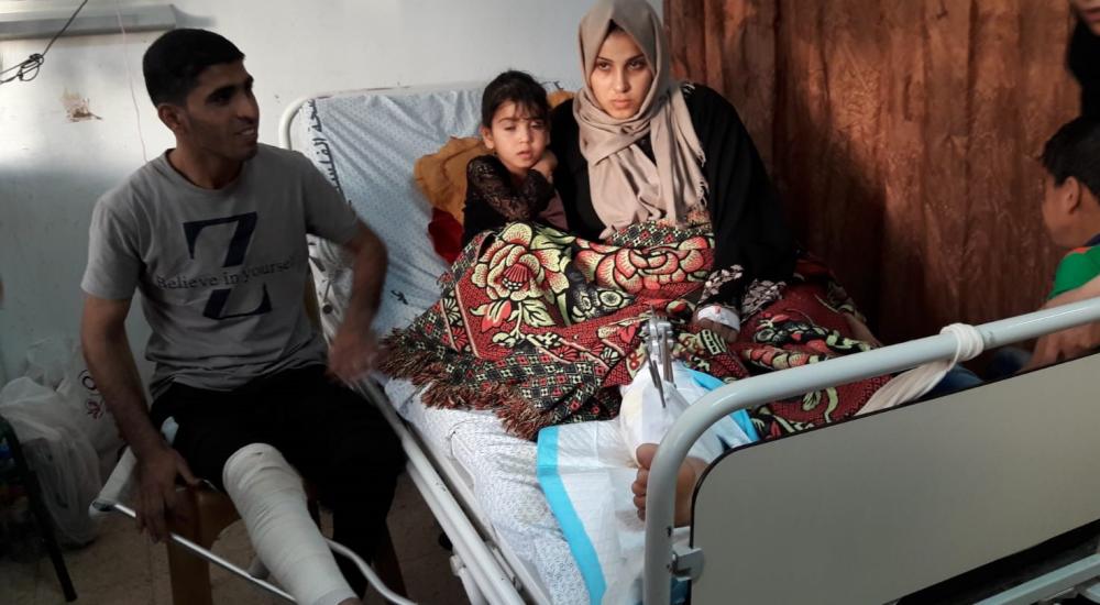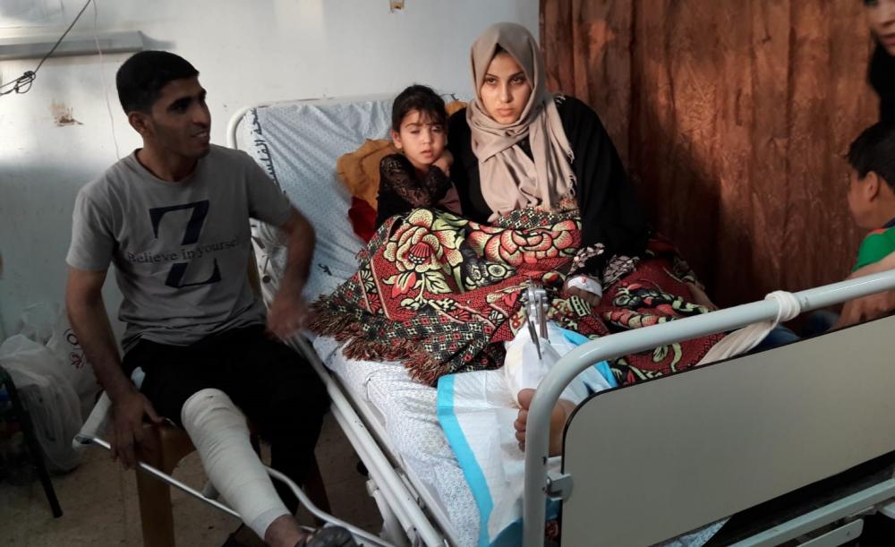 الجراح الغائرة جمعت الزوجين على أسرّة المستشفى منذ مطلع شهر رمضان، فيما يمكث أبناؤهم الثلاثة (عمر، ليان، الرضيع أمير "أربعة أشهر")، عند جدتهم وعماتهم، ما حرمهم من رعاية الوالدين.