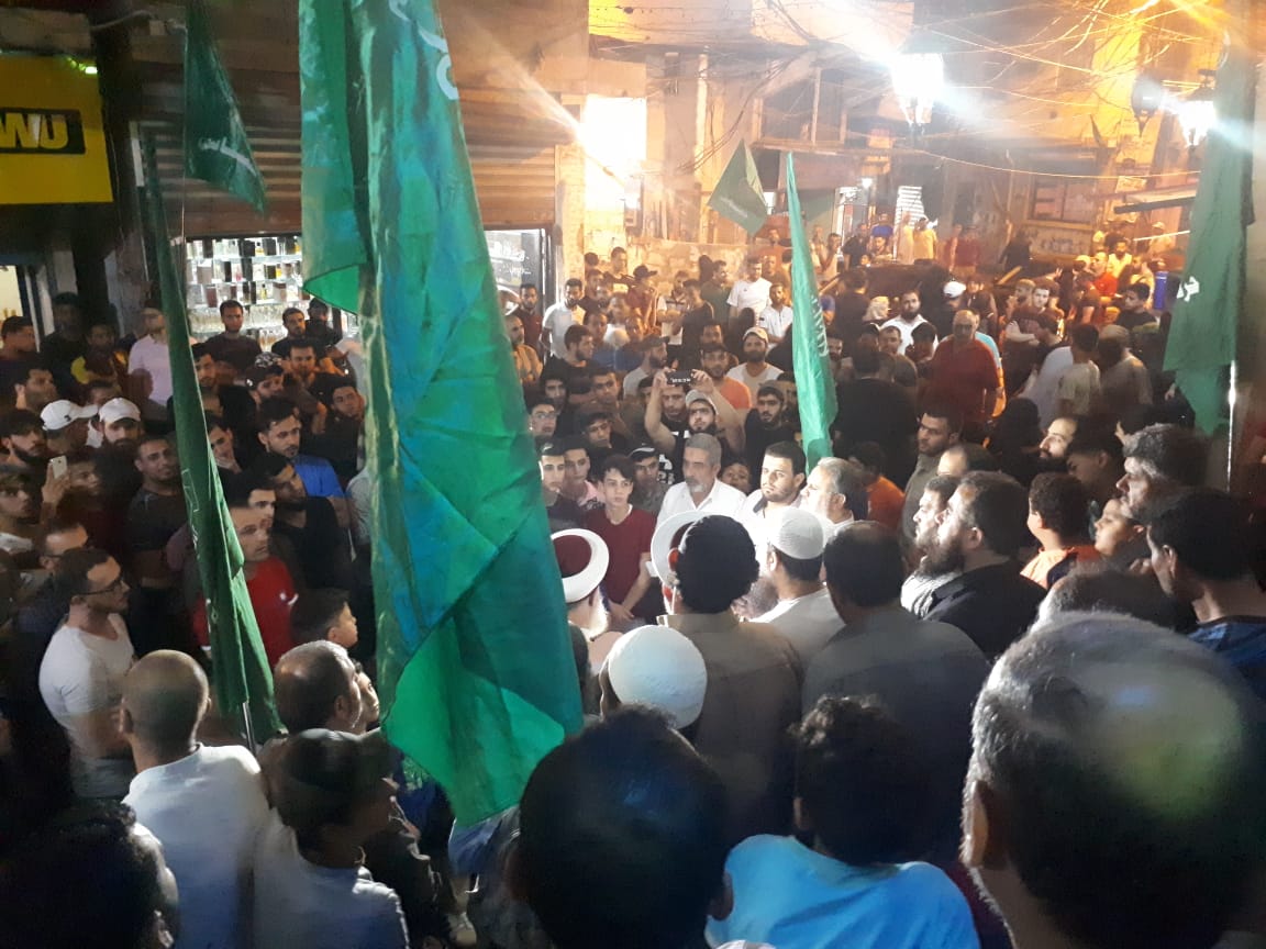 وتقدّم المسيرة التي طافت أرجاء المخيم الفلسطيني مشايخ ووجهاء وسياسيون.