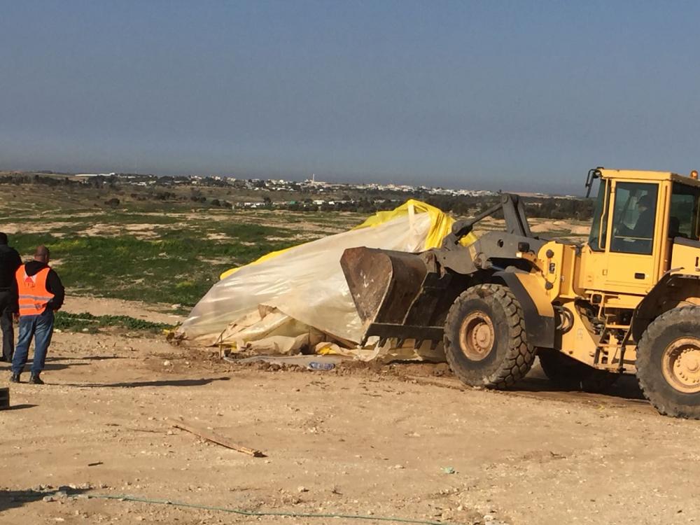 وذكر أن عناصر الشرطة أخرجوا أهالي القرية من منازلهم المقامة من الخشب والخيام عنوة إلى العراء في ظل أجواء الطقس شديدة الحرارة، ثم أتت الجرافات عليها بالكامل.