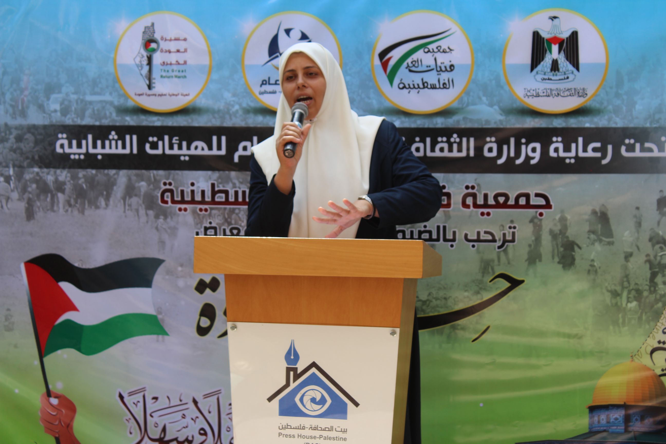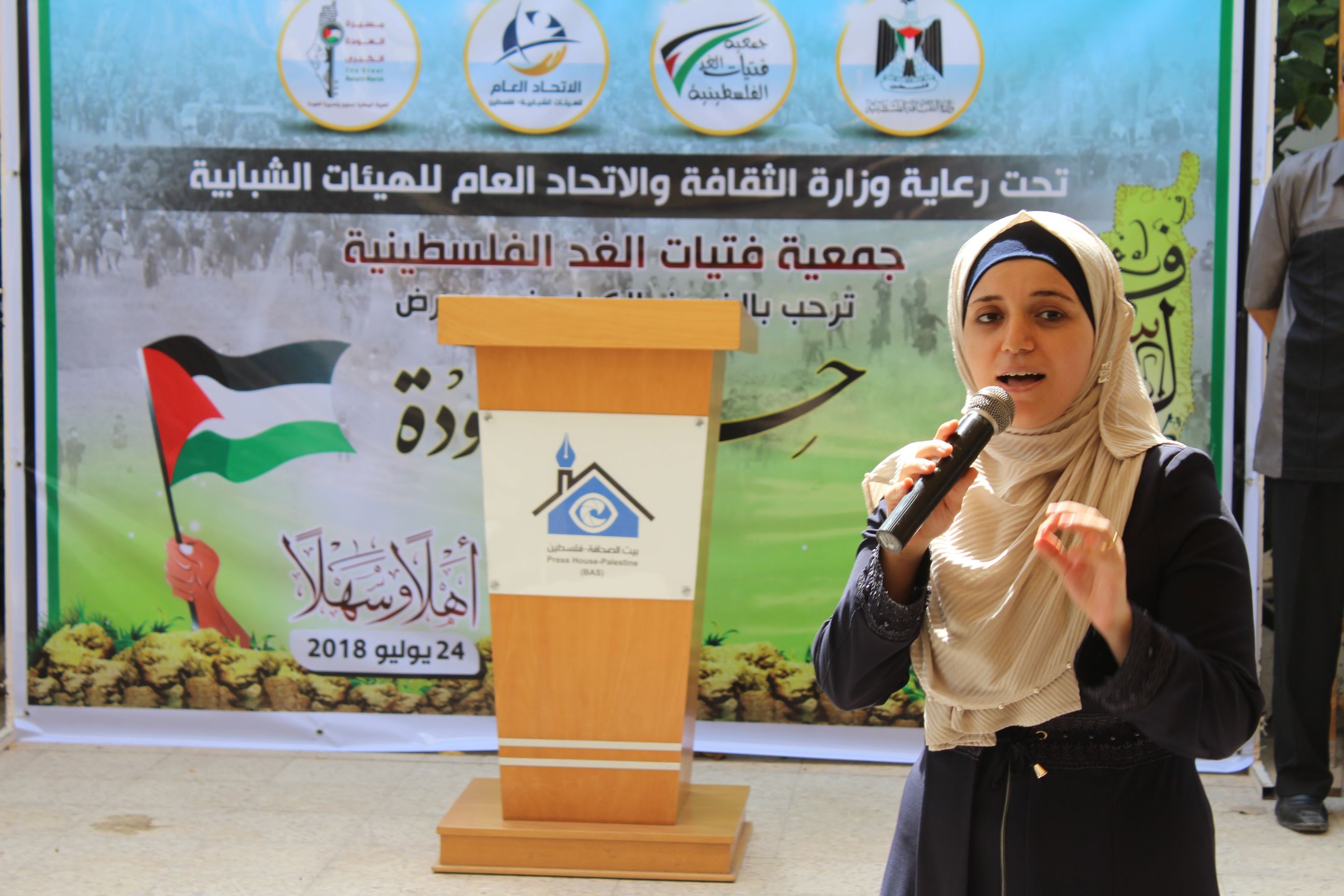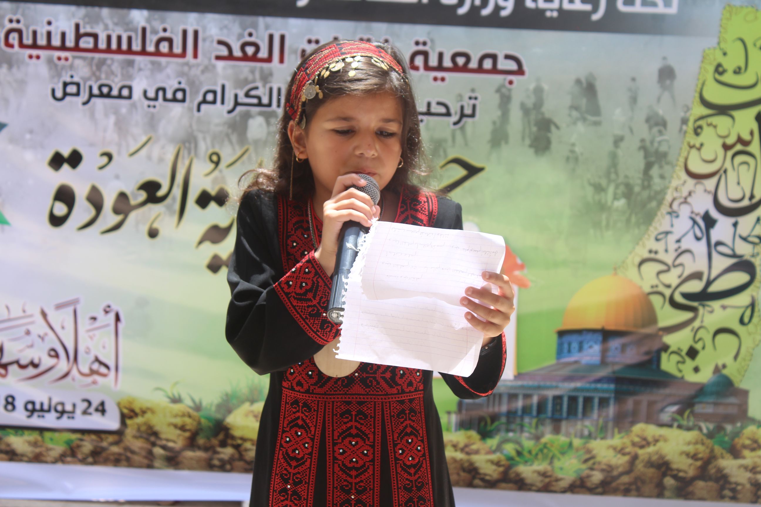 بدورها، بيّنت رئيس جمعية فتيات الغد رنا النيرب أن معرض حكاية العودة يحوي بين جنباته زوايا متعددة تعرض من خلالها مقتنيات شهداء مسيرة العودة وصورهم وسيرة حياتهم باللغة العربية والانجليزية، ويبرز المعرض الابداعات الشبابية المتعلقة بالعودة، داعية لأن يصبح المعرض متحفاً وطنياً لتخليد تضحيات الشعب الفلسطيني.