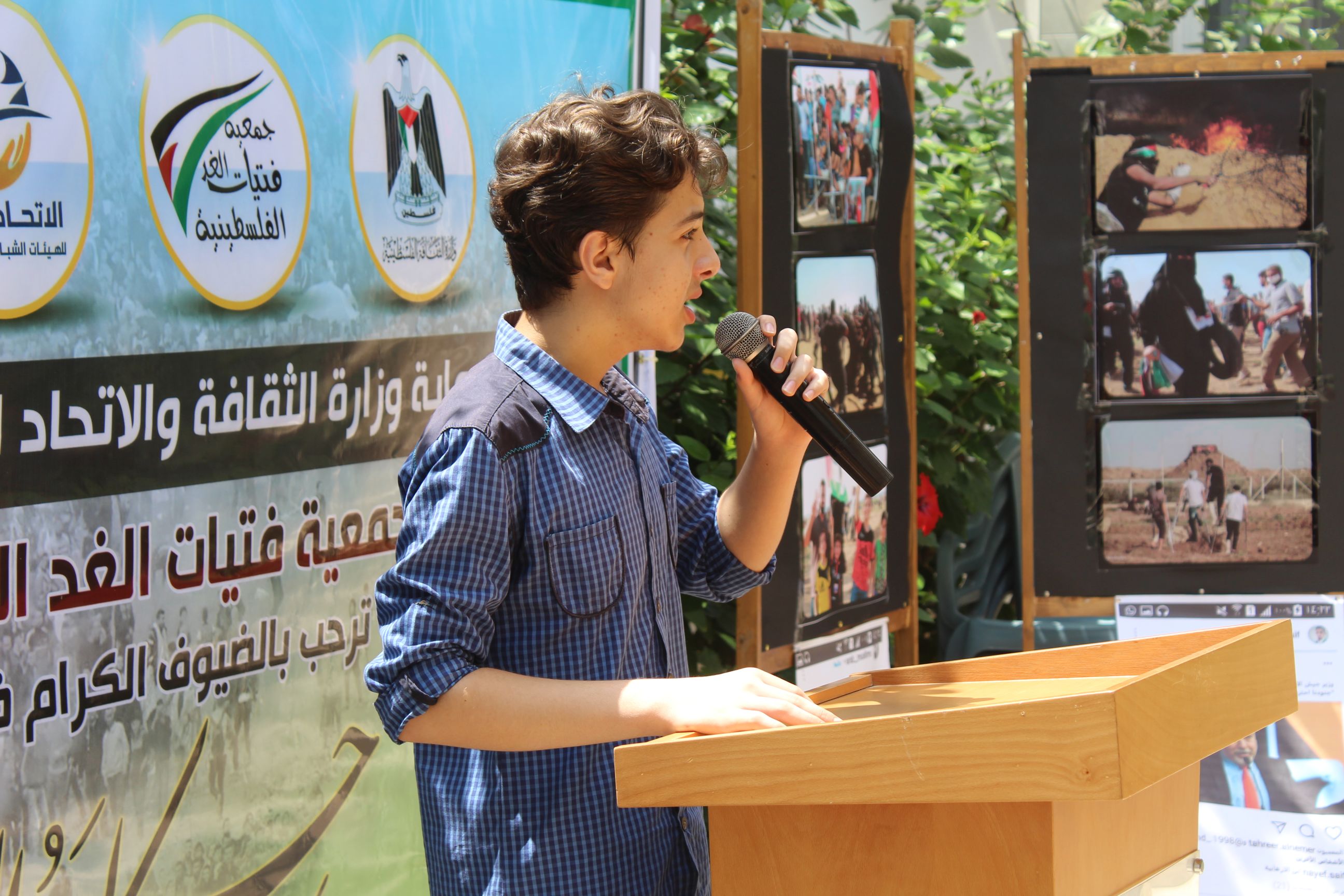 افتتحت وزارة الثقافة الفلسطينية صباح الثلاثاء، معرضاً بعنوان "حكاية العودة" بالتعاون مع الاتحاد العام للهيئات الشبابية وجمعية فتيات الغد، والذي يضم صورًا من مسيرة العودة ومقتنيات الشهداء وابداعات الشباب الثائر من وحي المسيرة.
