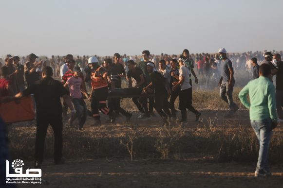 وتشهد المناطق الشرقية لقطاع غزة منذ 30 مارس/آذار الماضي مسيرات شعبية سلمية للمطالبة بحق العودة وكسر الحصار، قابلها جنود الاحتلال الإسرائيلي بإطلاق الرصاص الحي وقنابل الغاز ما أدّى لاستشهاد 158 مواطنًا وإصابة نحو 18 ألفًا آخرين بجراح متفاوتة.