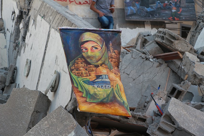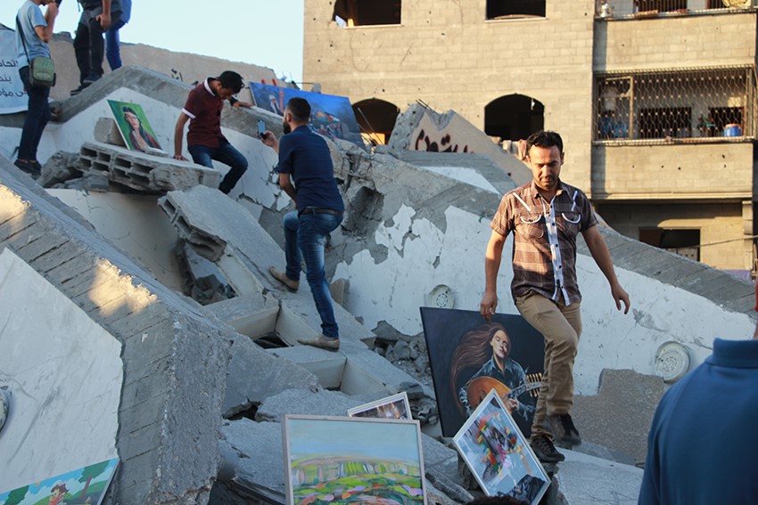 ونشر الفنانون اليوم لوحاتهم على أنقاض المبنى المُدمّر؛ للتأكيد على رسالة الفنانين في النضال السلمي وقدسية الفن والتراث ودوره الثقافي.