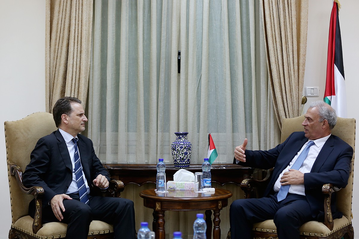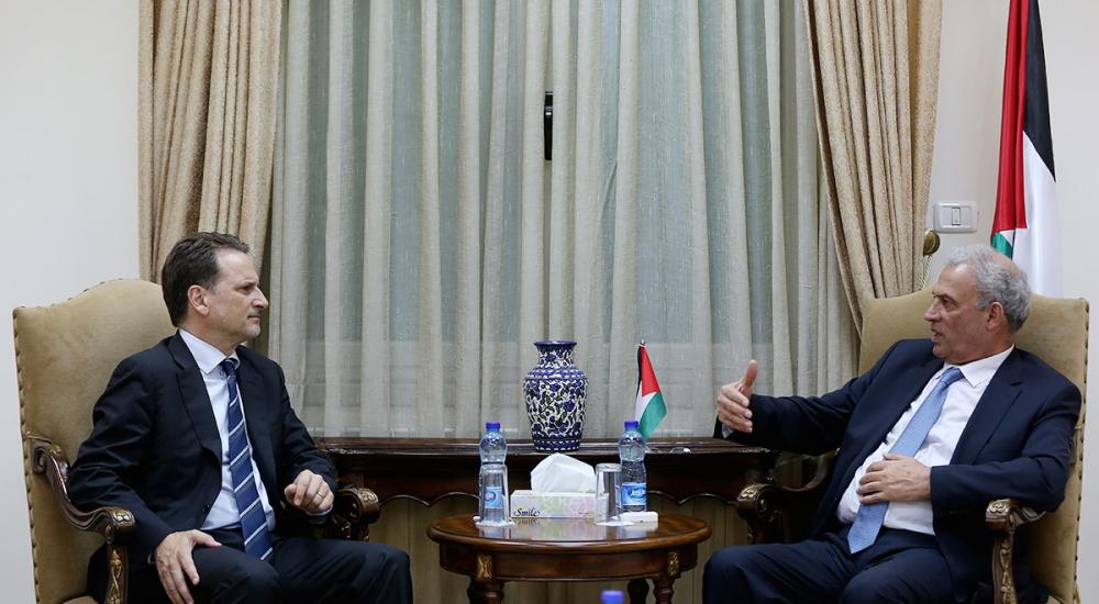 بحث نائب رئيس الوزراء زياد أبو عمرو مع المفوض العام لوكالة غوث وتشغيل اللاجئين الفلسطينيين "أونروا" بيير كرينبول الأزمة المالية التي تواجهها الوكالة، وشؤون الموظفين الذين تنوي إنهاء أو تقليص خدماتهم.