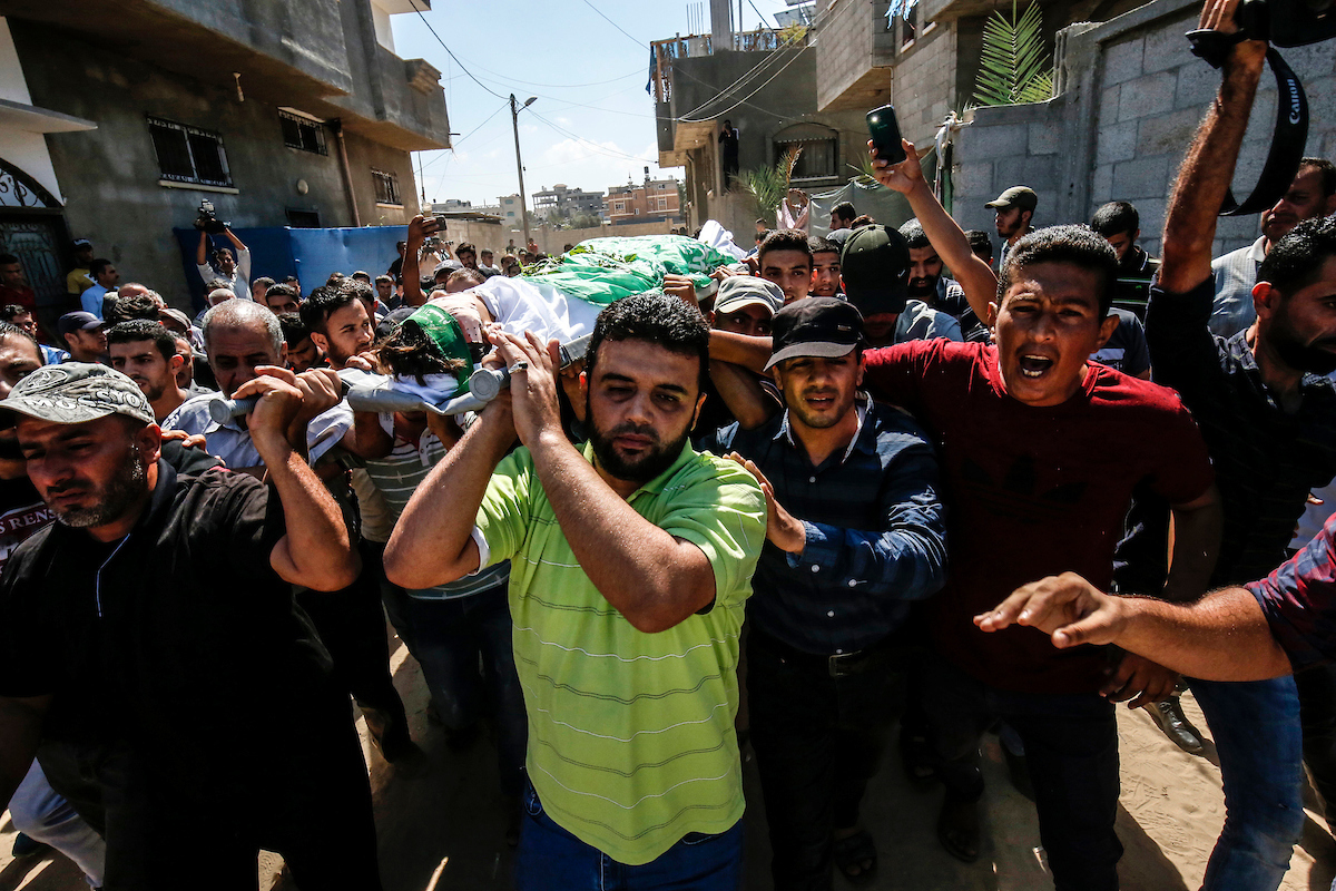 وودع آلاف المواطنين أبو عيادة الخميس الماضي، والذي أنهى حياته عيار ناري متفجر أصيب به برأسه وهو يشارك مع مئات المتظاهرين السلميين مساء الأربعاء بمسيرة العودة قرب السياج شرقي رفح.