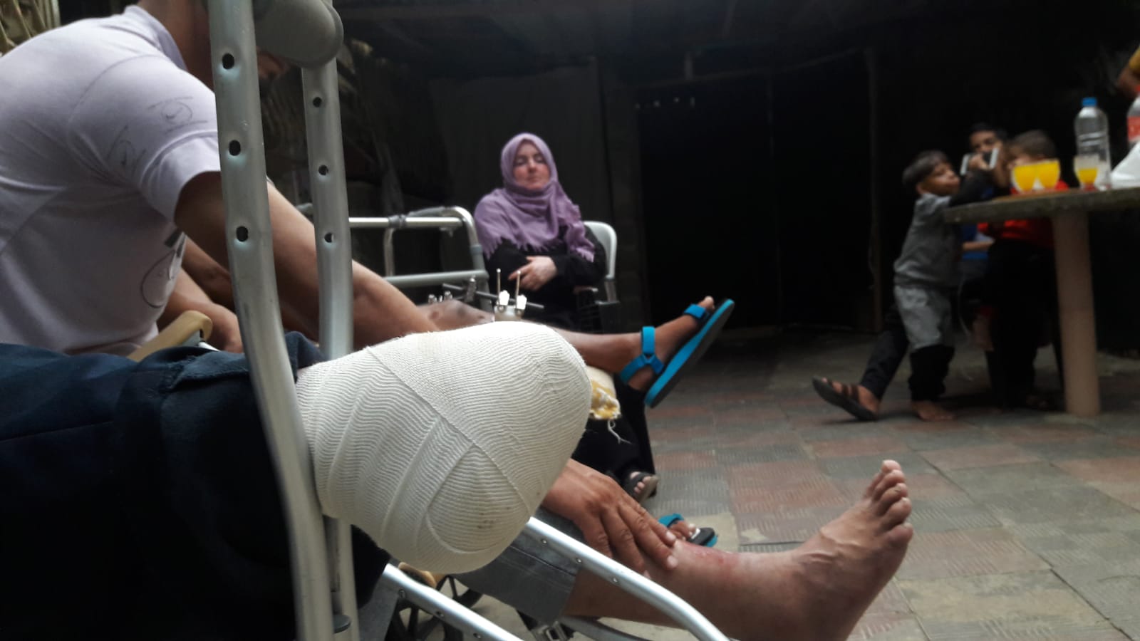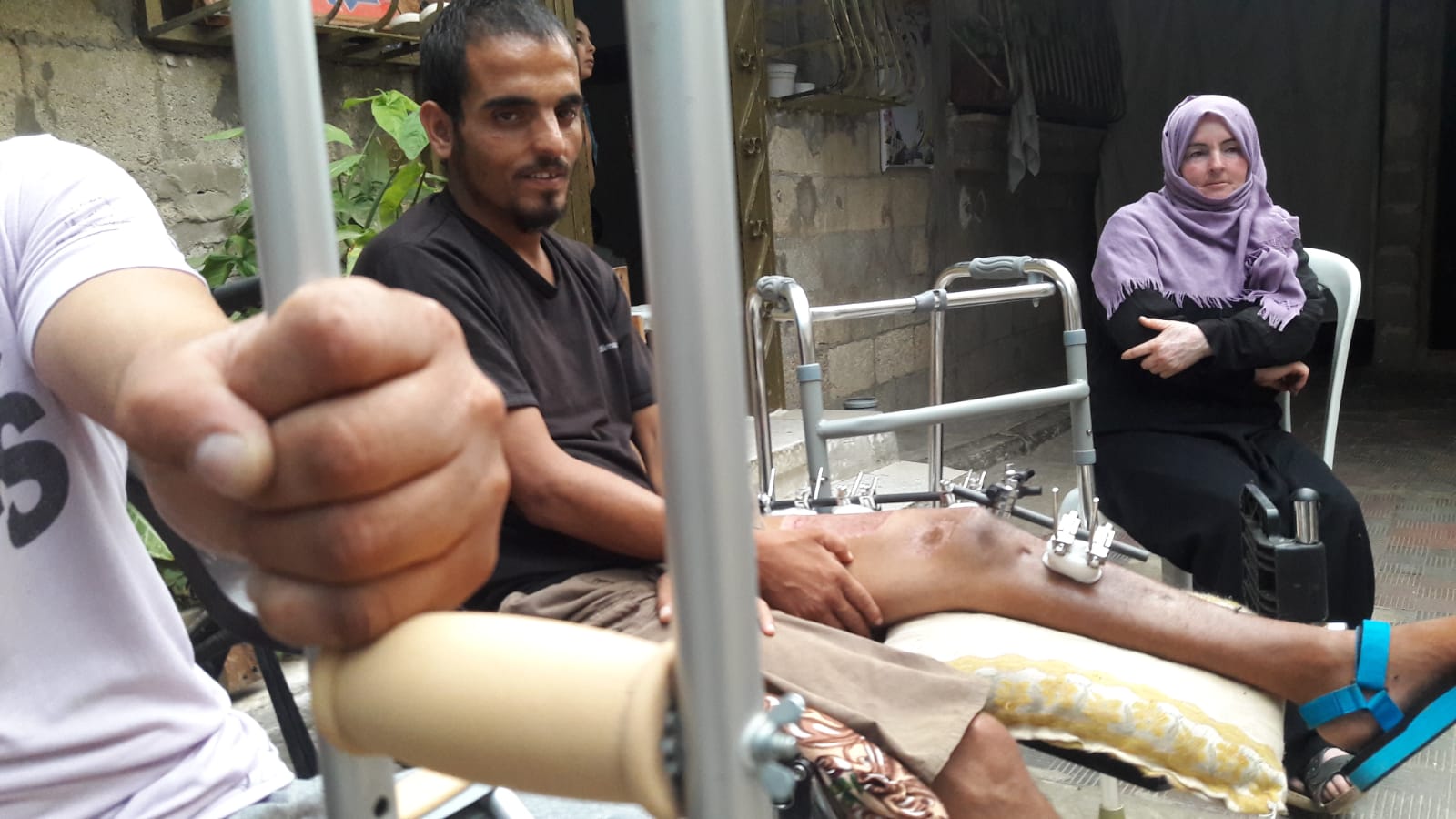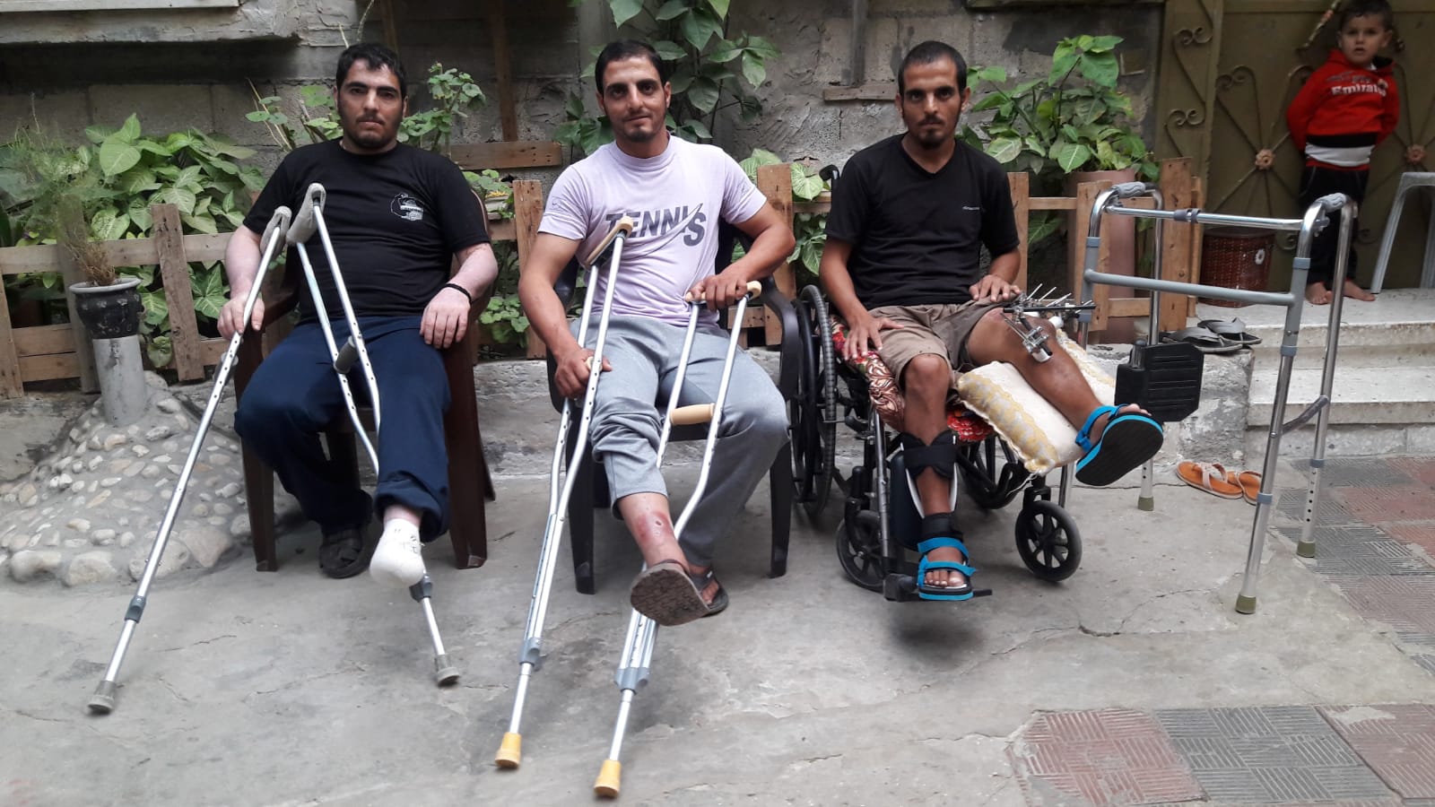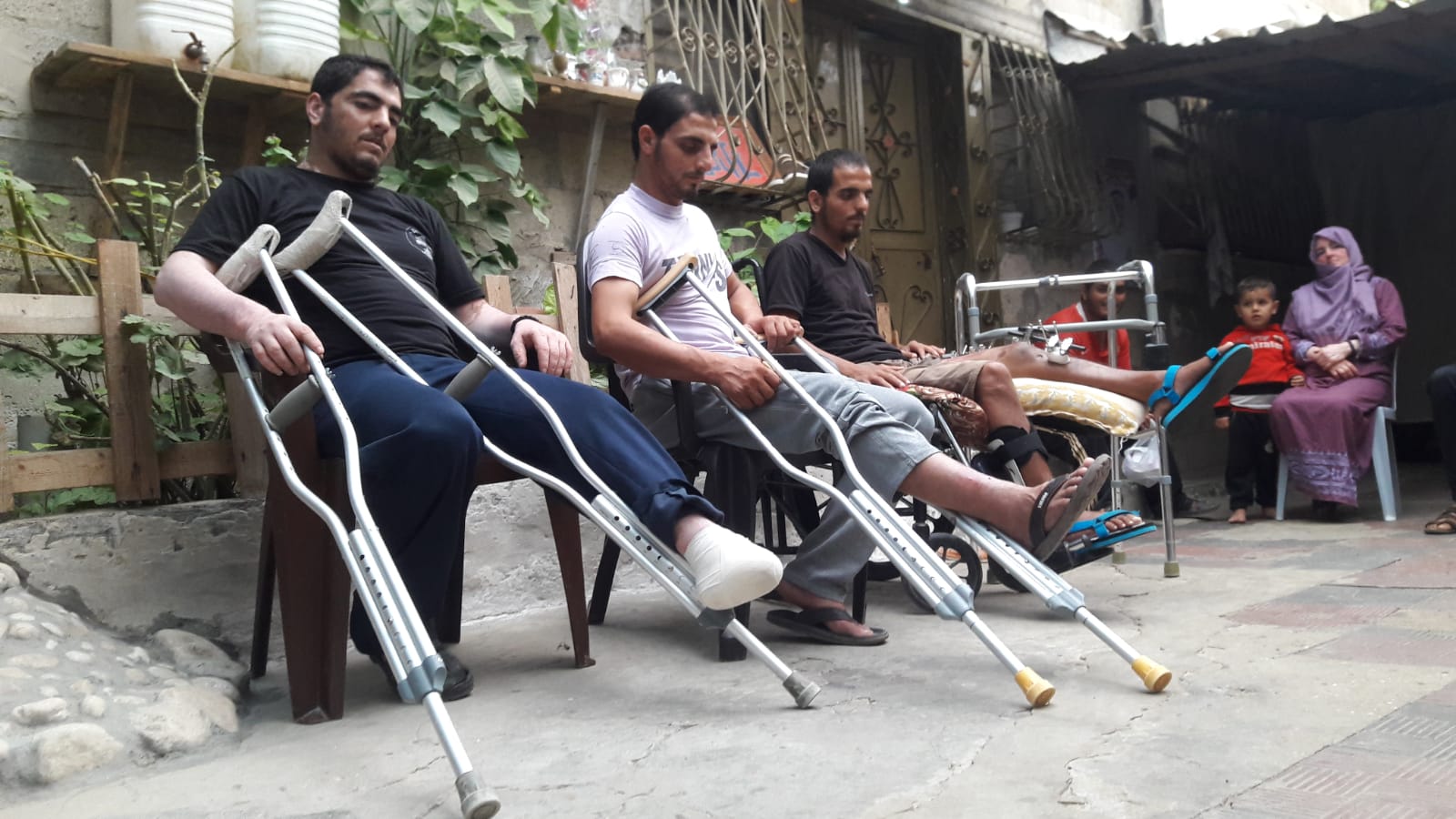 وتعرض "فادي" لثماني إصابات، آخرها تسببت في بترٍ بقدمه اليُمنى، أما "جهاد" فأصيب أربع مرات، ويعاني أثر ذلك من التهابات حادة في قدمه وثُبّت جهاز بلاتين فيها، فيما أصيب "معتز" مرةً واحدة قبل ستة أشهر في قدميه برصاصٍ مُتفجر، أوقف حركته، ويستعين بكرسيٍ مُتحرك، ويُعاني "نزار" من إصابتين في ظهره وقدمه.