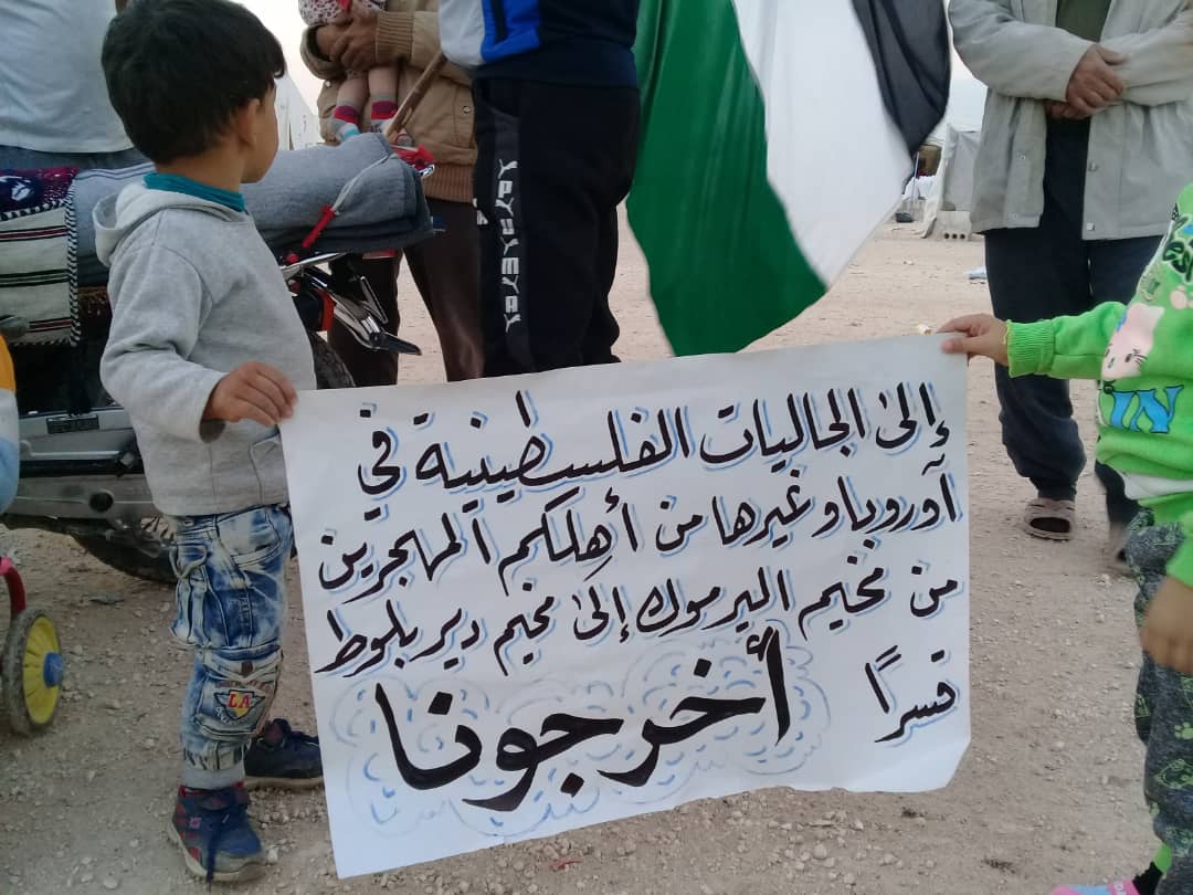 ولم تتدخل حتى اللحظة منظمة التحرير لمساعدة أهالي المخيم وإنهاء معاناتهم، كما تخلت وكالة غوث وتشغيل اللاجئين الفلسطينيين (أونروا) عن تقديم أي التزام تجاه فلسطينيي سورية في مخيمات الشمال السوري والتي تعتبر ضمن مناطق عمل أونروا.
