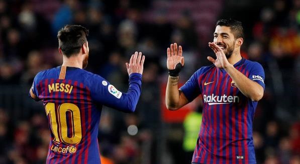 فرحة سواريز وميسي بالفوز