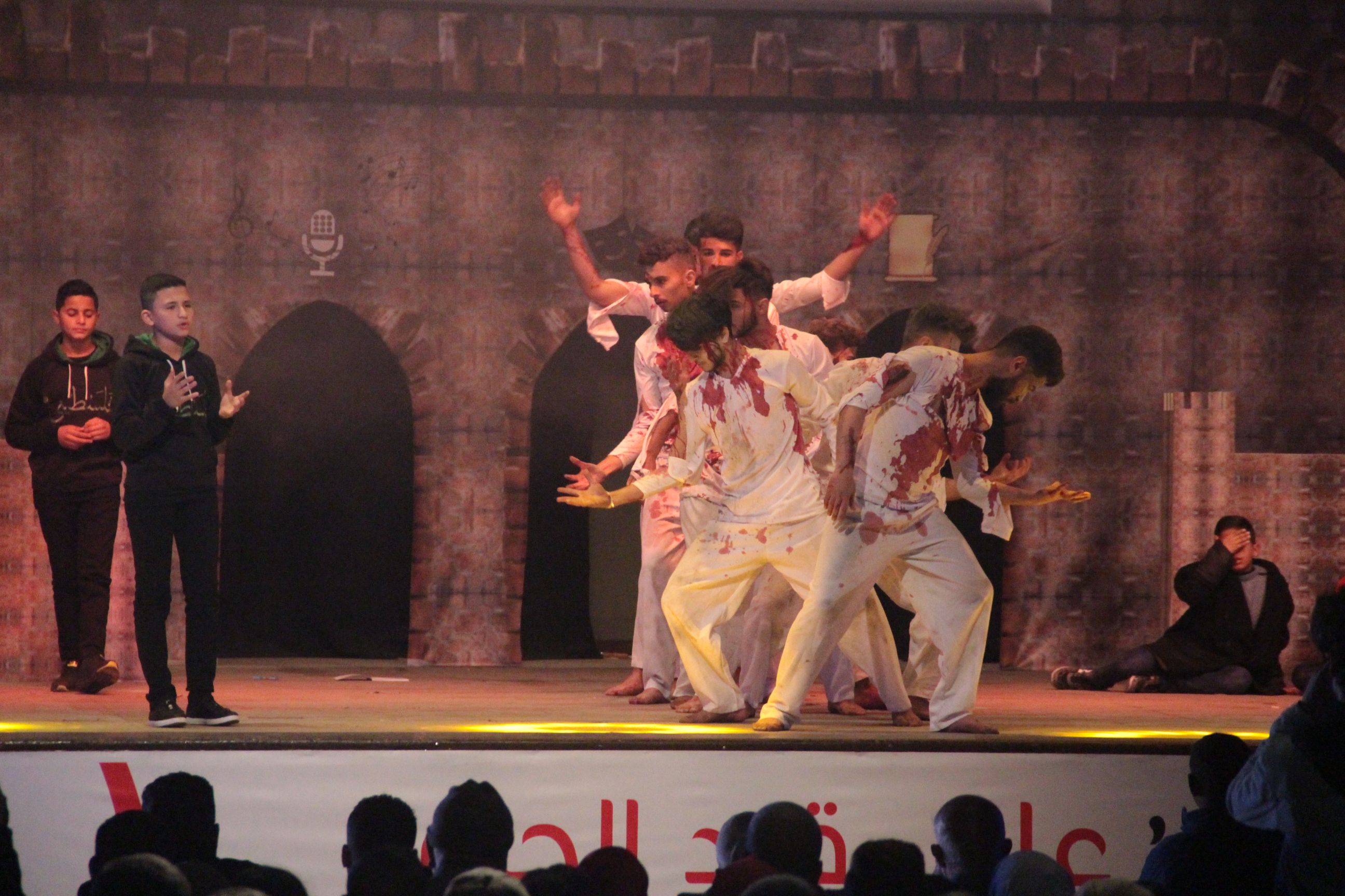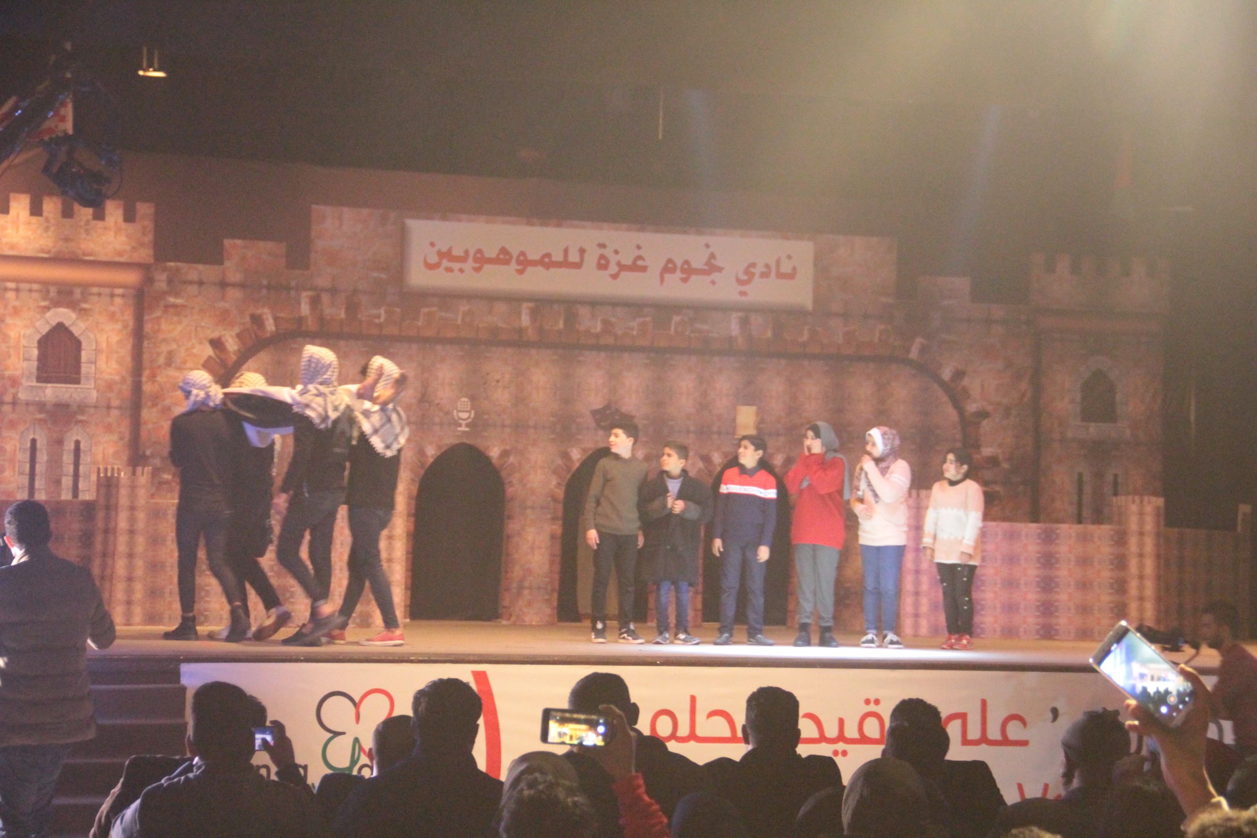 وفي اللوحة الثانية، استعرض الأطفال من خلال النشيد أهم ملامح المعاناة في قطاع غزة من قطع الكهرباء، والبطالة والفقر، والحصار واغلاق المعابر، والحروب، فيما تناولت اللوحة الثالثة بعض المشاهد من مسيرات العودة وحلم أطفال غزة بزيارة القدس والمسجد الأقصى المبارك.