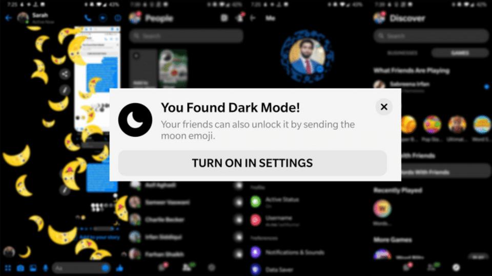 ومع أن الميزة أصبحت متاحةً رسميًا من فيسبوك على تطبيق مسنجر، إلا أنها تحتاج إلى حيلة بسيطة لتفعليها. وبالنظر إلى أن أيقونة الوضع الليلي في معظم التطبيقات على الأجهزة المحمولة هي الهلال، فإنه بإمكان أي مستخدم تفعيل الوضع الليلي عن طريق إرسال رمز الهلال إلى نفسه أو إلى مستخدم آخر.