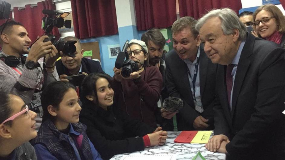 والتقى غوتيريس خلال زيارته بالعاملين في وكالة الغوث والمنتفعين من خدماتها، بحسب بيان للوكالة وصل "صفا".