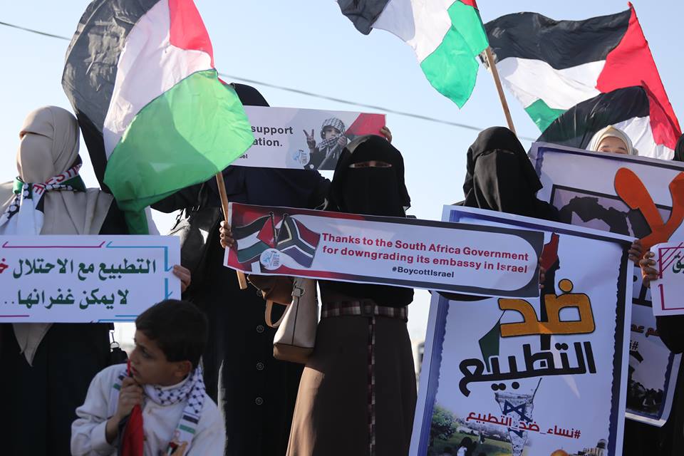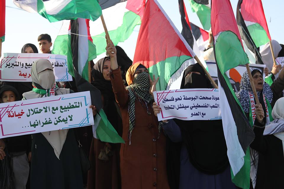 ولبى أهالي القطاع دعوة الهيئة الوطنية العليا لمسيرات العودة للمشاركة في فعاليات اليوم التي ترفع شعار "معا لمواجهة التطبيع".
