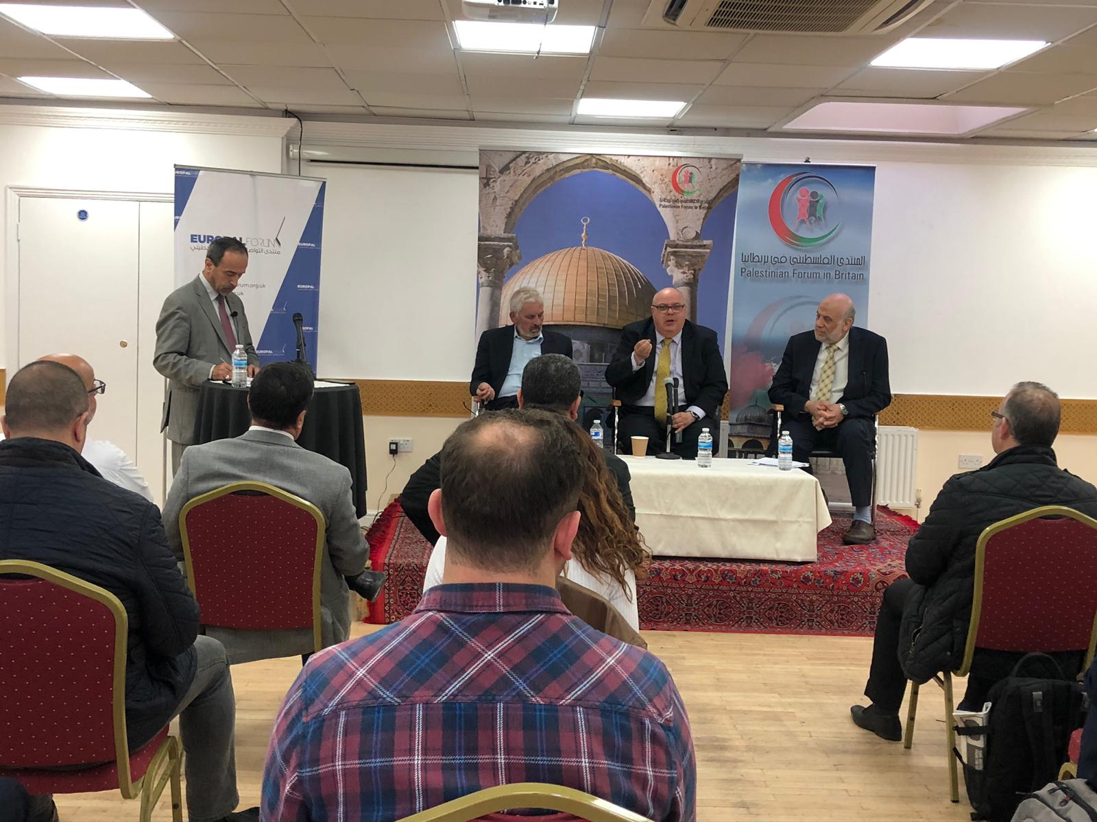وتحدث في الندوة كل من رئيس رابطة الجالية الفلسطينية في بريطانيا عضو المجلس الوطني الفلسطيني علي الصالح، ورئيس المنتدى الفلسطيني في بريطانيا حافظ الكرمي، ورئيس الحملة البريطانية للتضامن مع فلسطين كامل حواش، فيما سيديرها الإعلامي الفلسطيني زاهر بيراوي.