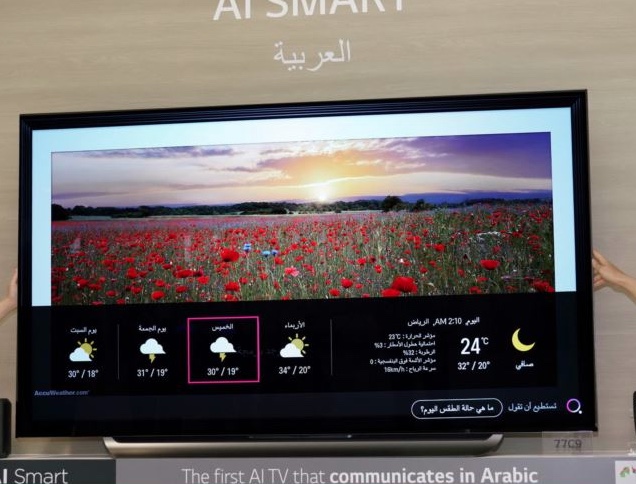 أعلنت شركة إل جي إلكترونيكس عن أول شاشة تلفزيون معززة بخدمة الدعم الصوتي باللغة العربية.