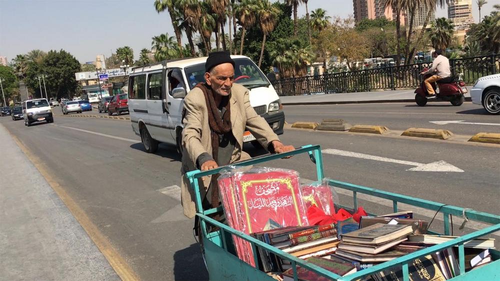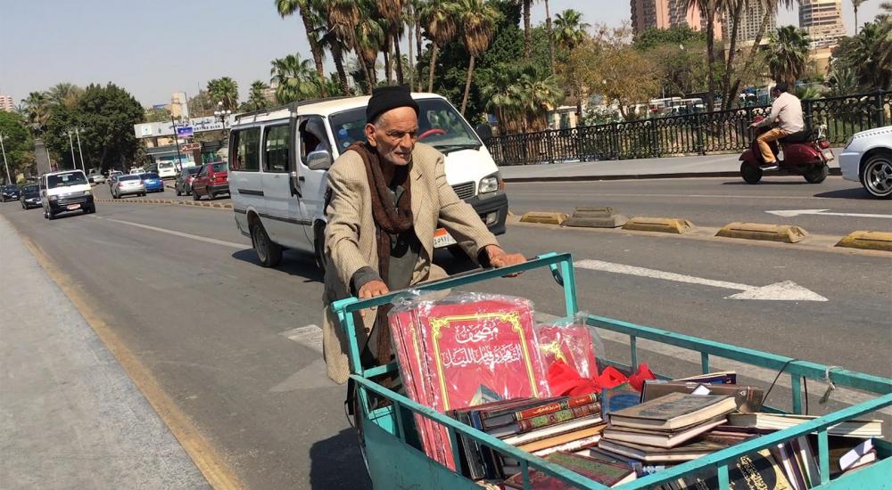 رغم عوامل الزمن التي تركت بصمتها العميقة على تجاعيد وجهه، وحركته البطيئة التي تتضح صعوبتها للرائي وهو يجاهد لتحريك دراجته المملوءة بالكتب بين شوارع القاهرة، فإن هذا لم يؤثر في عزيمة حسان محمد حسان الذي يشارف على عامه السبعين.