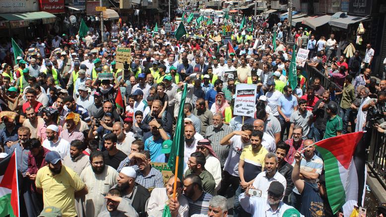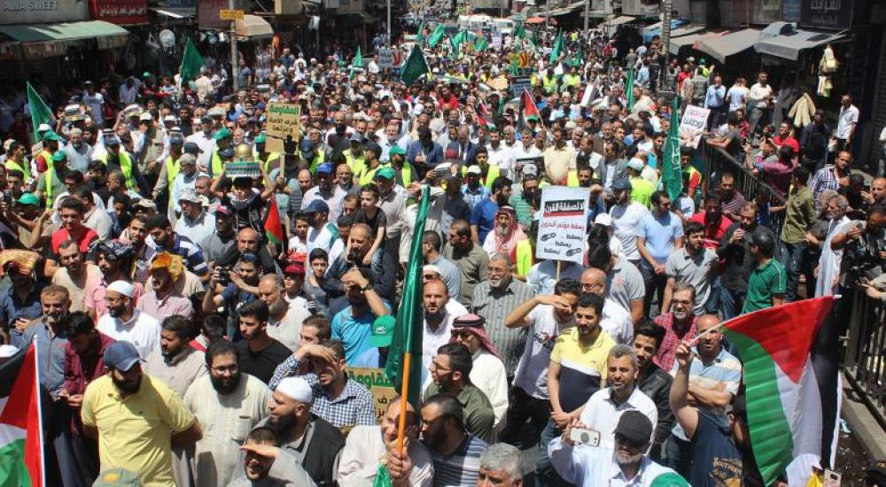 شارك مئات الأردنيين في ثلاثة اعتصامات احتجاجية مساء الثلاثاء نظمت في مقر النقابات المهنية، وقرب الدوار الرابع، وفي منطقة العبدلي بالعاصمة الأردنية عمان، رفضًا لـ "صفقة القرن" و"ورشة البحرين" التي بدأت في المنامة أمس.