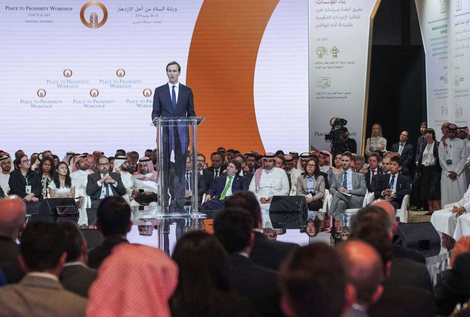 وأوضحت الخارجية الروسية في بيان لها تعقيباً على نتائج ورشة المنامة التي انعقدت في البحرين، نشرته وكالة "سبوتنيك عربي"، أن "الاقتراح الرئيسي يتمثل بإنشاء صندوق بقيمة 50 مليار دولار لتنفيذ مشاريع مختلفة في الأراضي الفلسطينية ومصر والأردن ولبنان على مدار 10 سنوات، لكنه ترك على الهامش المهمة الرئيسية المتمثلة في استئناف المفاوضات الفلسطينية الإسرائيلية المباشرة، وإقامة دولة فلسطينية مستقلة ضمن حدود عام 1967، وعاصمتها القدس الشرقية".